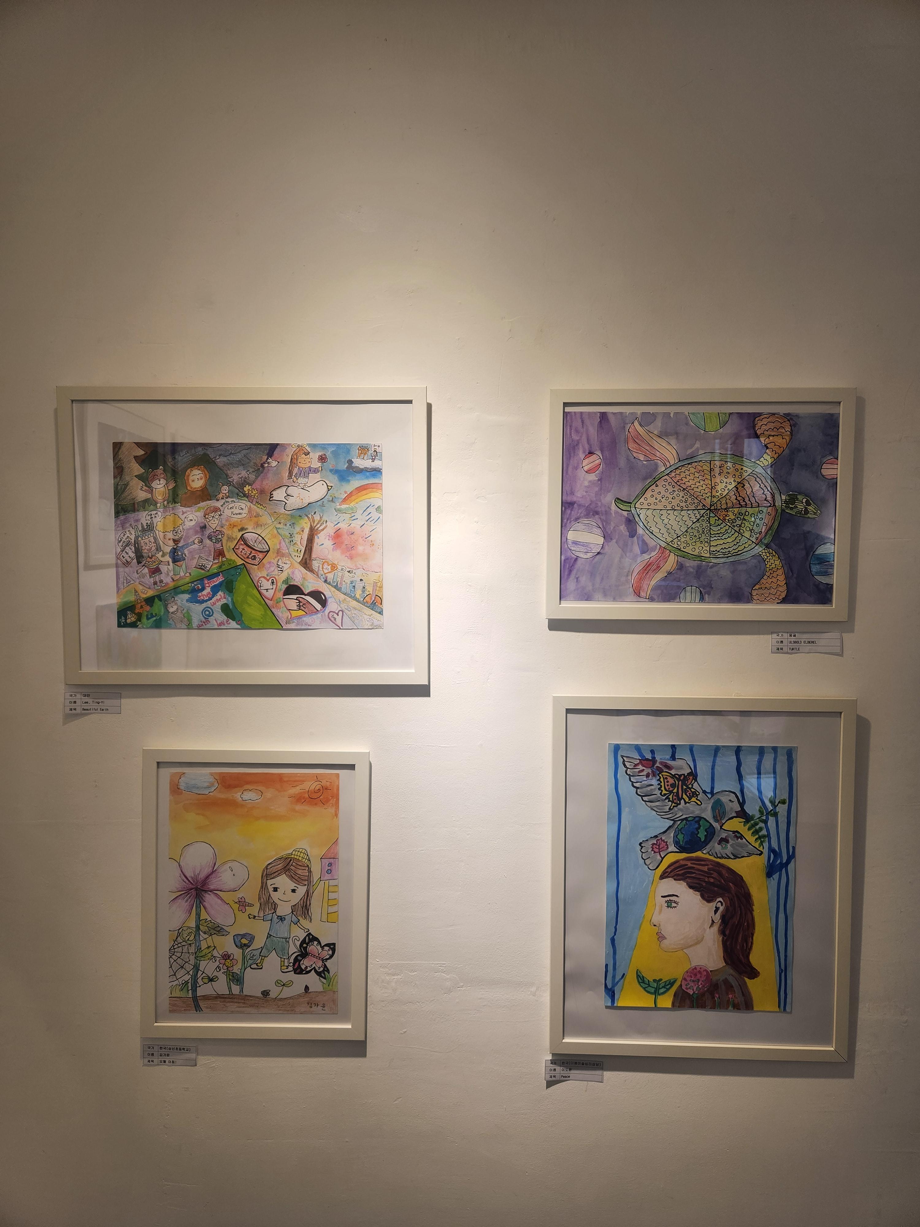 국내 대상 수상작은 울산 더봄심리상담센터 소속 9세 정인준어린이의 작품 ‘아저씨만 모르는 비상사태’로, 펜 드로잉을 통해 울산 시민들의 일상 속 긴장감과 섬세한 감정을 탁월하게 표현해 높은 평가를 받았다. 해외 대상은 타이페이의 11세 어린이 Lu Mey-Yu의 수채화 작품 ‘The Other Side of the Earth’가 차지했다. 이 작품은 전쟁과 평화를 대조적으로 담아낸 구도로 보는 이에게 깊은 울림을 전달한다.